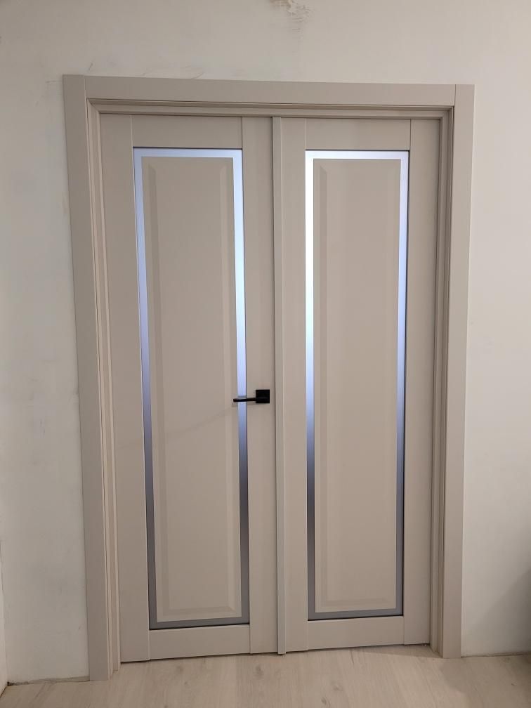 Дверь ПО Queen N23 Велюр светлый стекло белое из Экошпона COVERFLEX (Двери Нева) в с установкой и доставкой