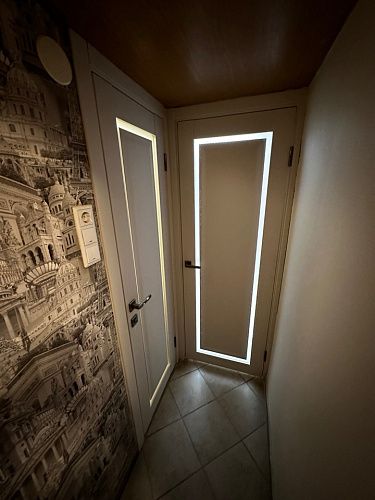 Кроме того производится врезка под скрытые петли. Такая опция помогает избежать лишних пыльных работ на адресе и сокращает время работы на монтаже. По возможности врезки в конкретную модель уточняйте у менеджеров.